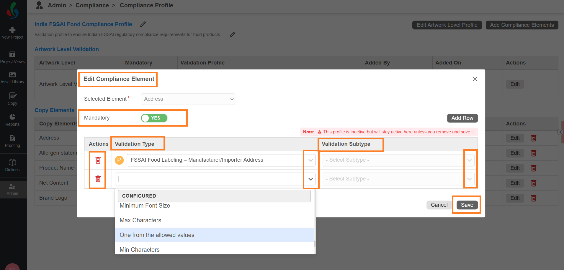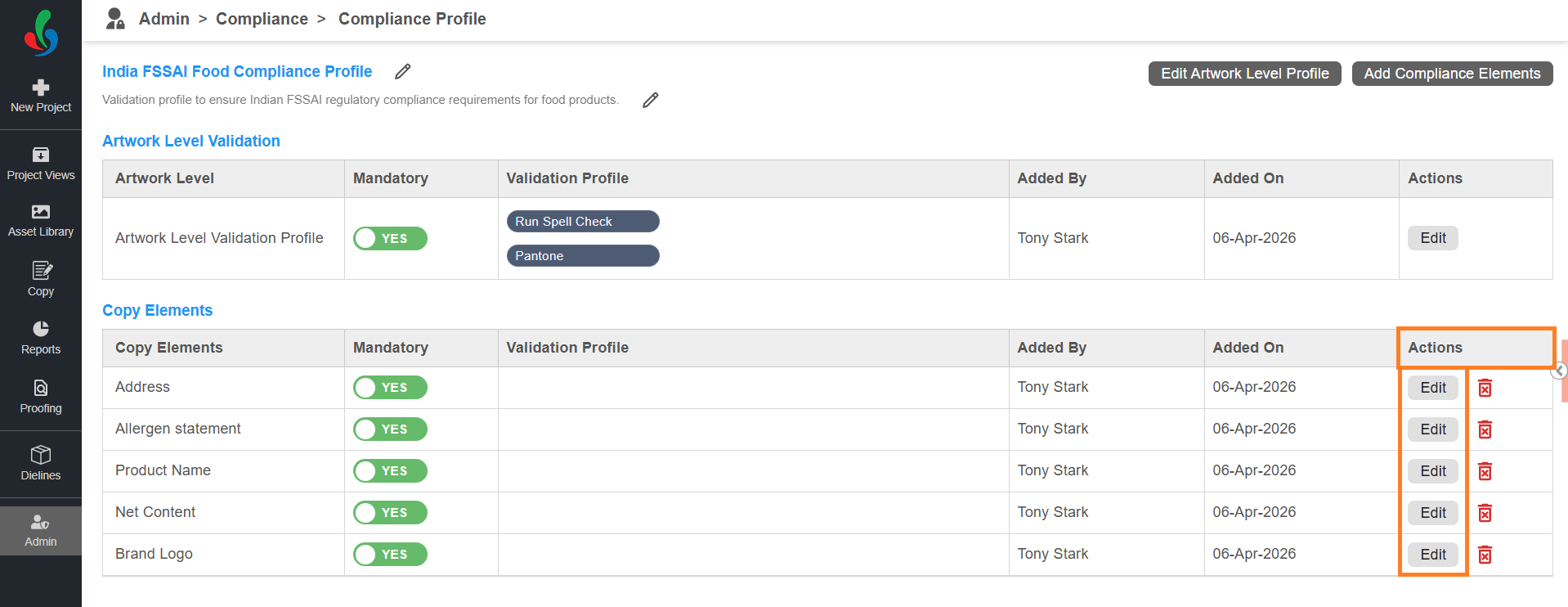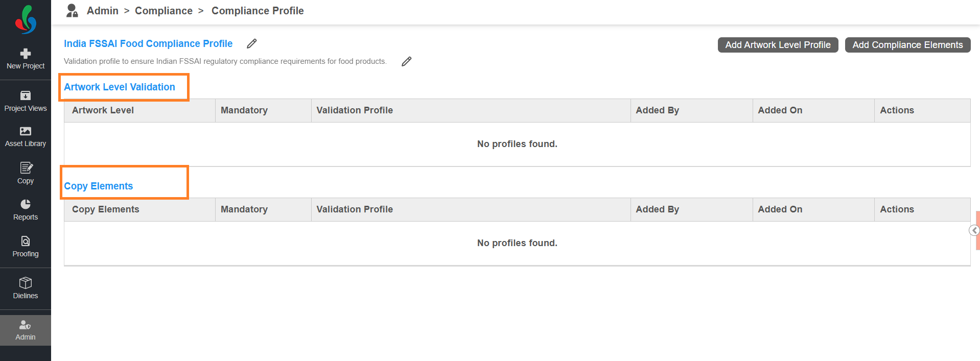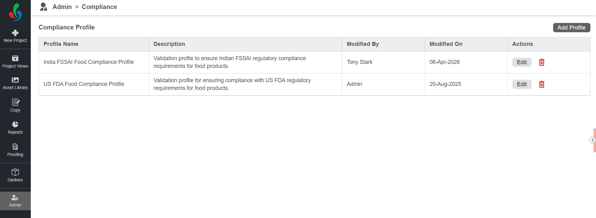 By default, the system provides out-of-the-box compliance profiles with pre-configured validation checks. You can edit these profiles or create new ones based on your requirements.