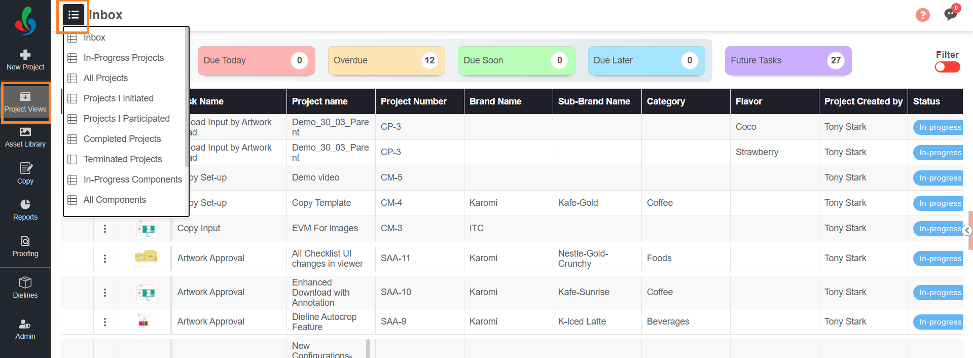 - Select the required project or task from any view (for example, Inbox, In Progress).
