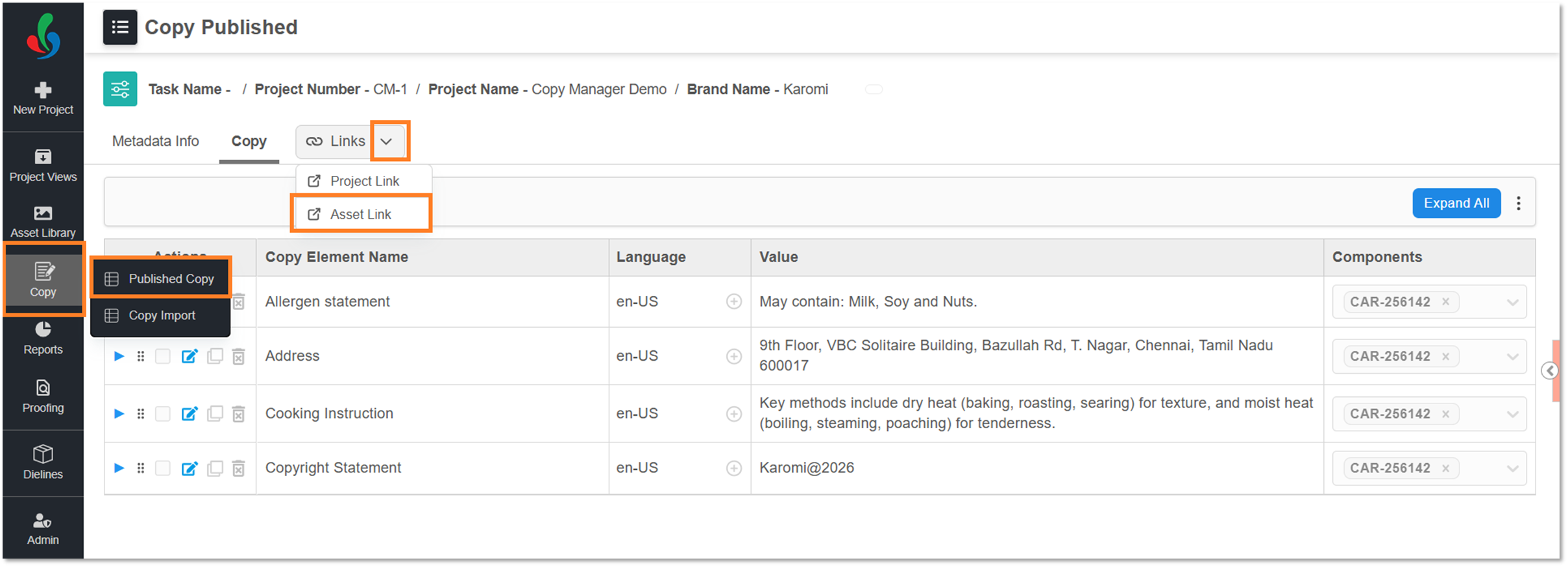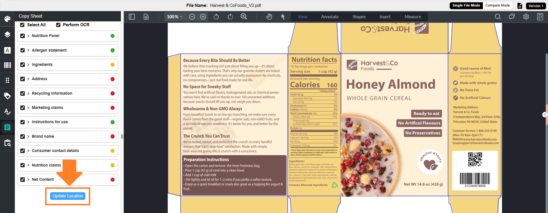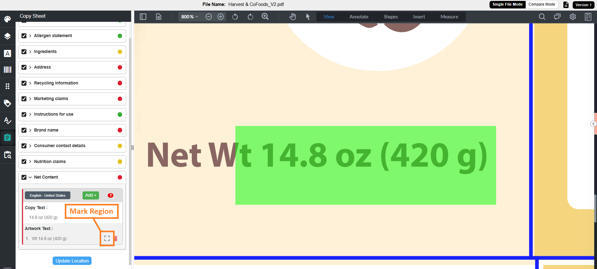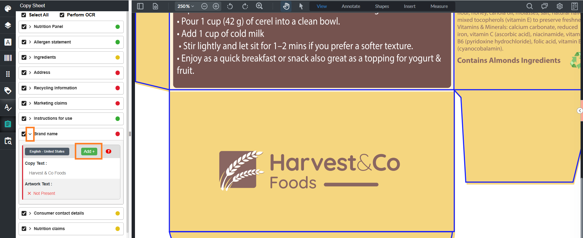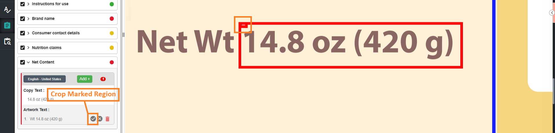- Artwork Text – Displays the text detected in the artwork corresponding to the copy element.