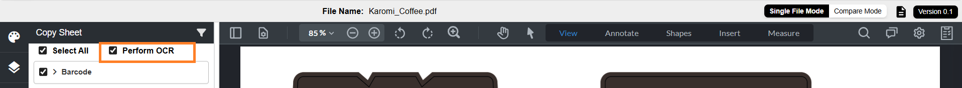 - If you are comparing only live (selectable) text, you can uncheck the Is OCR Needed? checkbox to disable OCR.