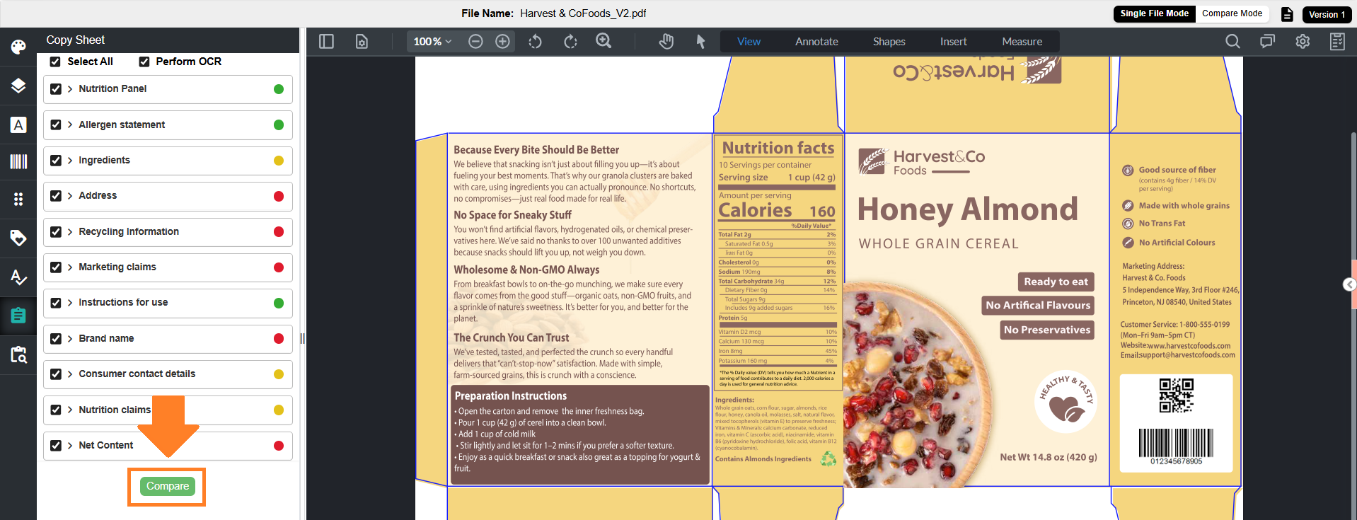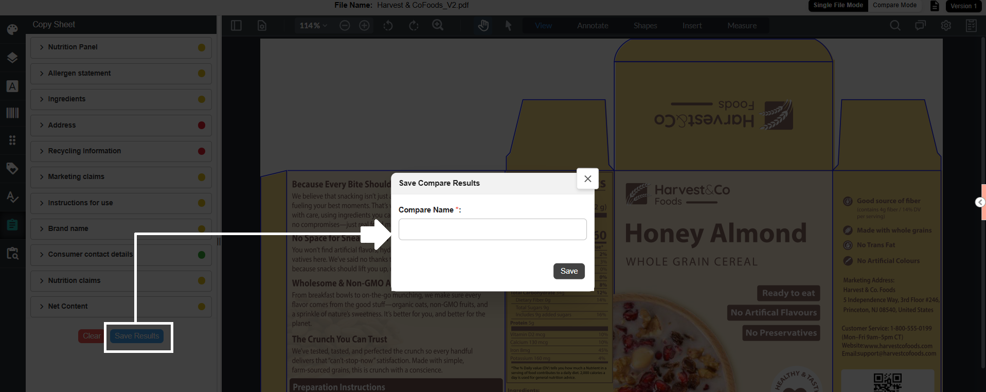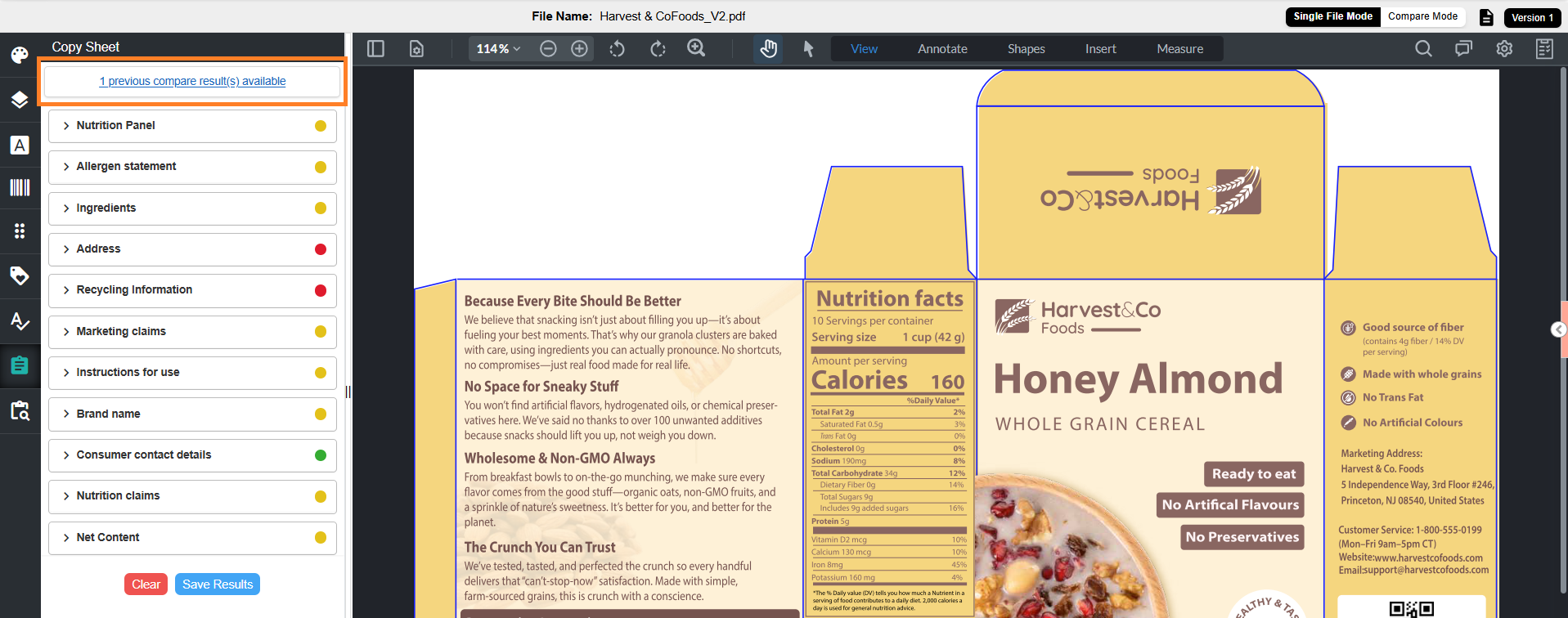 The Copy Compare tool allows you to compare and verify collected copy content against the artwork in the Web Viewer.