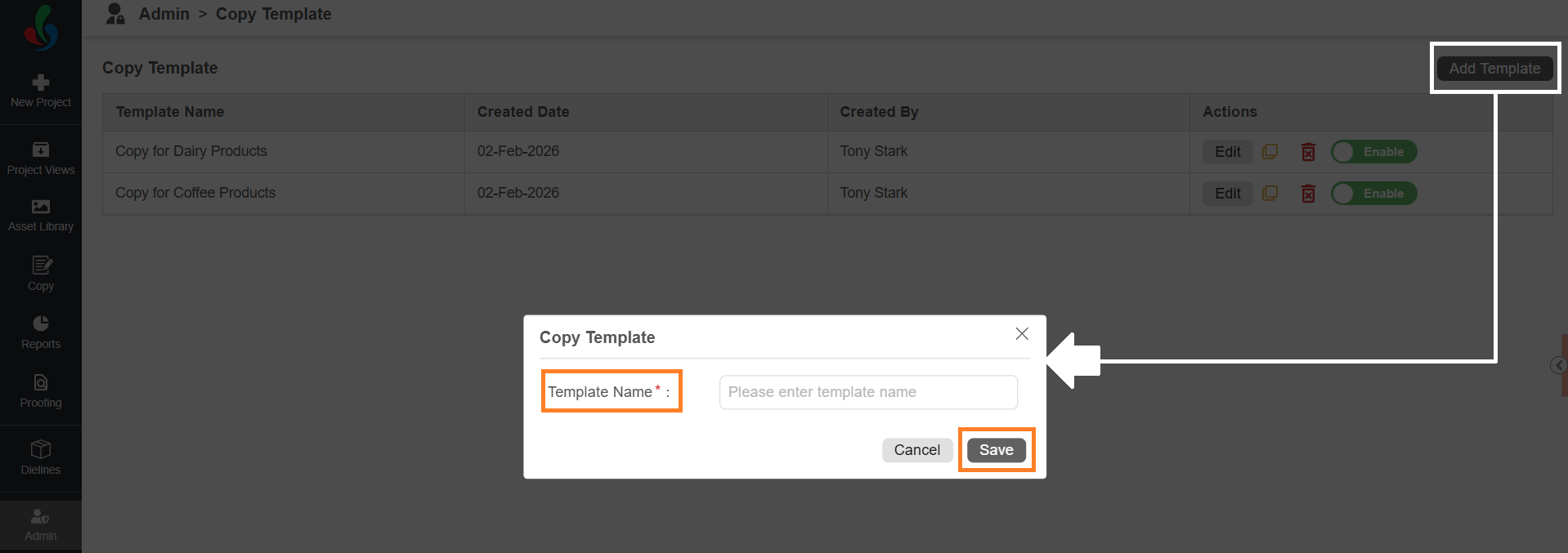 - Enter the Template Name.