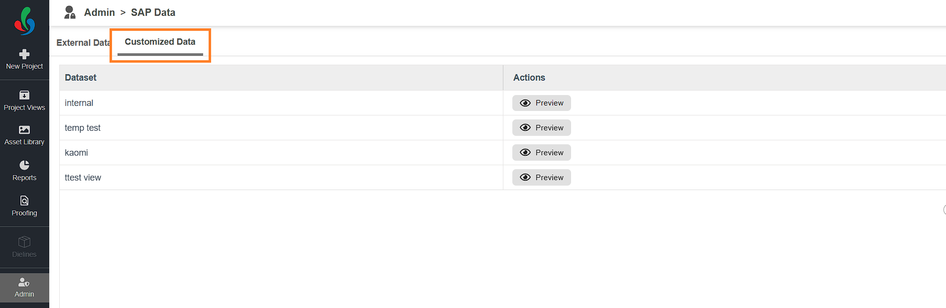 - Click the Preview button in the actions column associated with the desired data.