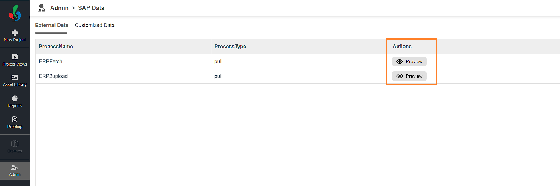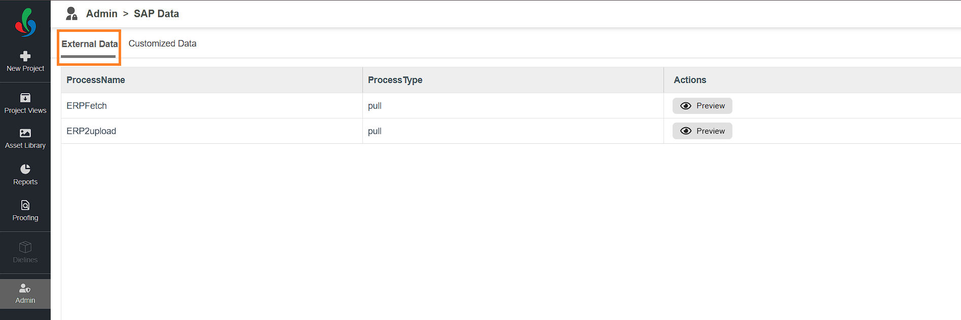 Note: Customized views are also configured in the backend. Please contact ManageArtworks support team to define or update these views. Only customized data can be linked to project templates in ManageArtworks. Even if the external data is successfully imported, you must customize it to use it within workflow templates. Without customization, external data cannot be mapped to project fields or components. |