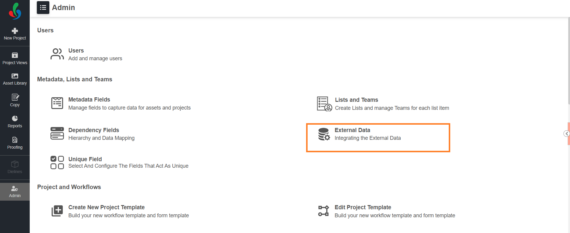 | | Note: External Data is an enterprise feature available exclusively to users on the Enterprise plan. For more information on all ManageArtworks plans, click here. |