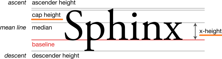 - X-Height: The height of the main body of lowercase letters, excluding ascenders and descenders.