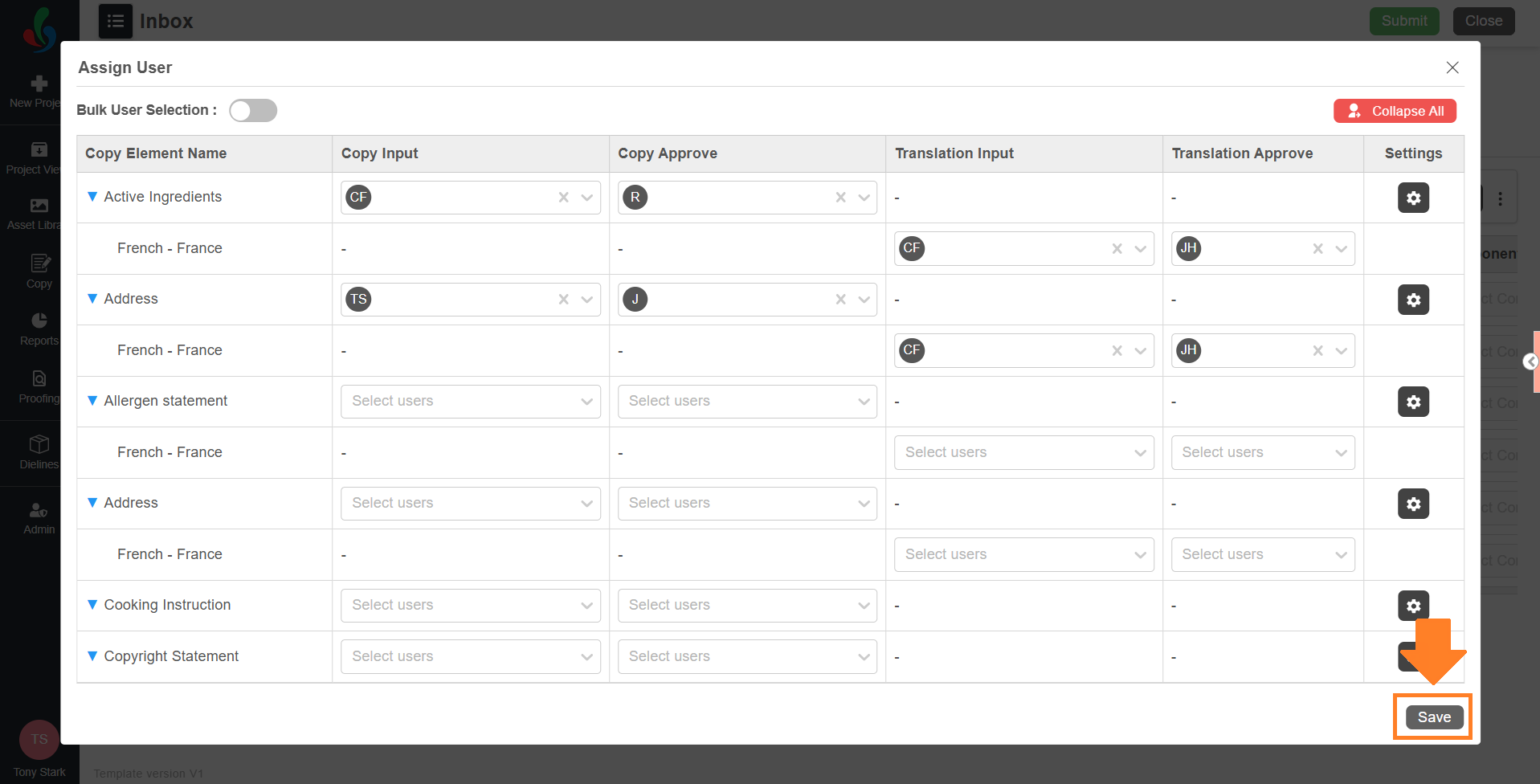 | Note: You can only approve the translation elements that are assigned to you. |
