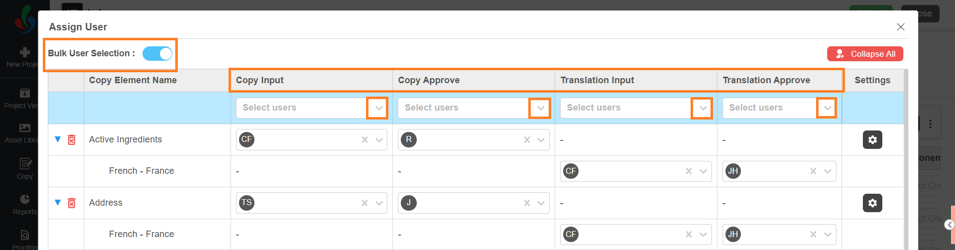 During this task, users set up copy elements only. Actual copy content is not entered at this stage. Content input, review, approval, and translation are handled in subsequent Copy tasks.