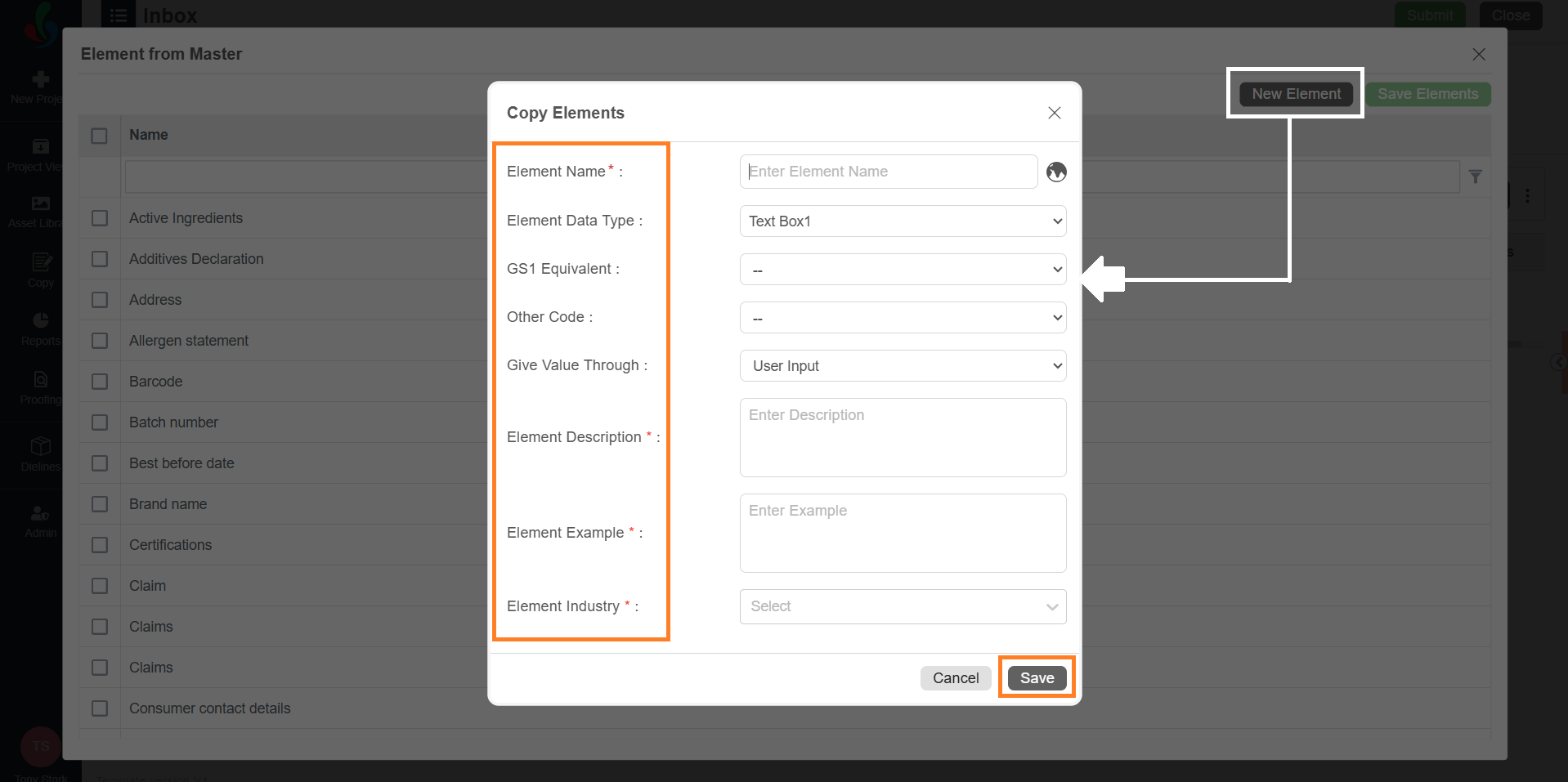 - Element Industry: Select the industry relevant to the element. This helps users contextualize the element and allows the system to apply industry-specific compliance checks, and AI training.