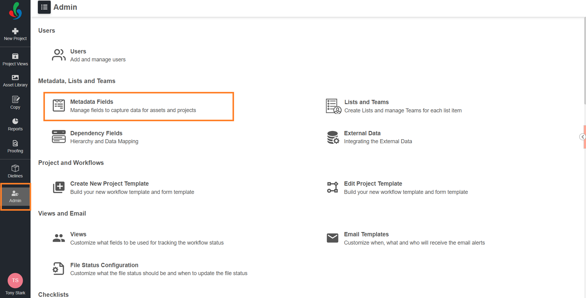 - Under Metadata, Lists and Teams, select Metadata Fields.