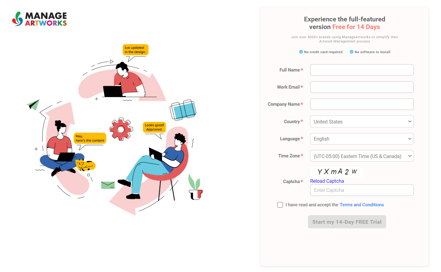 | Note: After starting your trial, youâll have the option to schedule a free onboarding session to help you get started with ManageArtworks. |