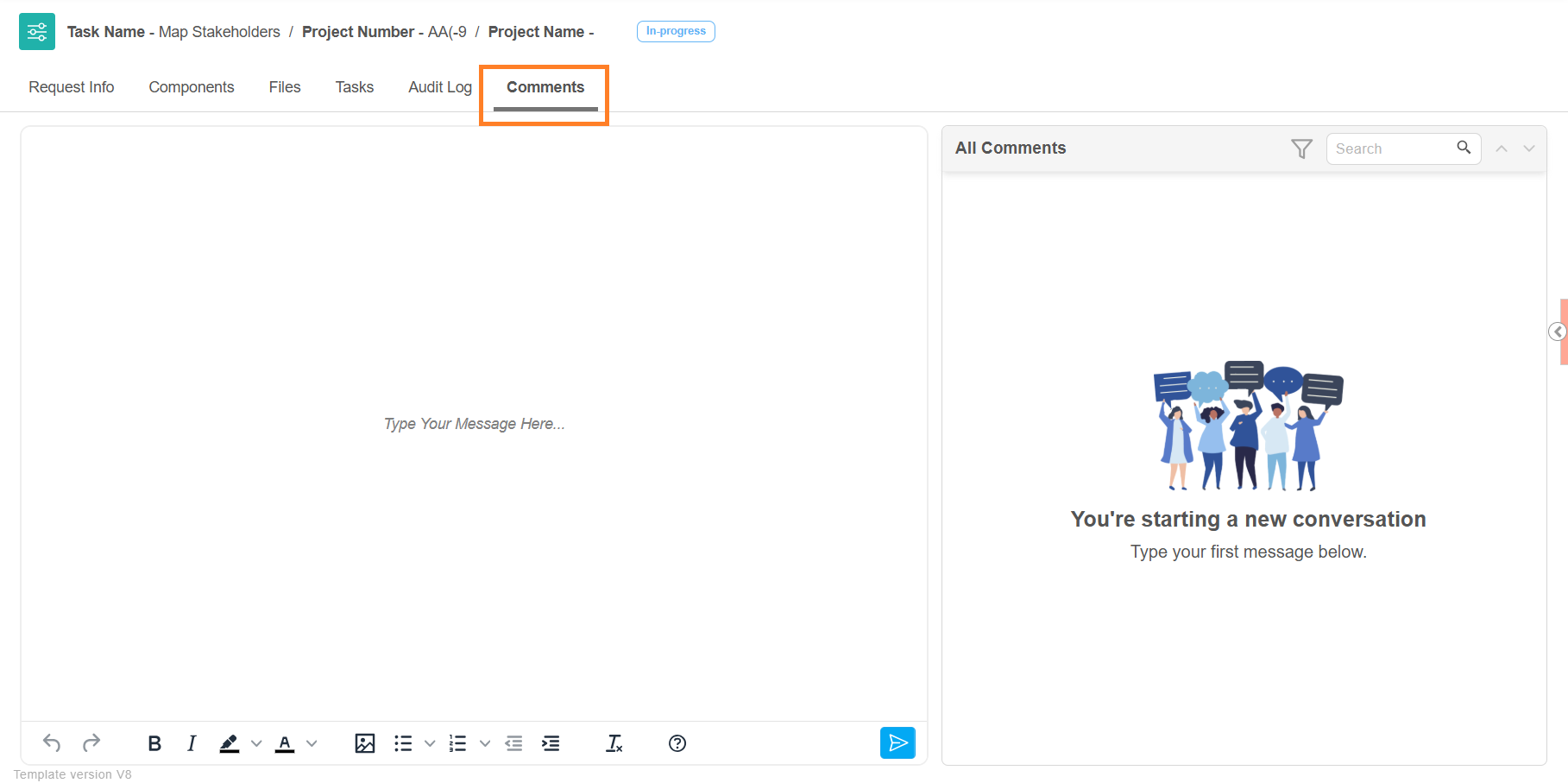 After the project is initiated, assigned users can access the Comments tab to add remarks, share insights, and collaborate.