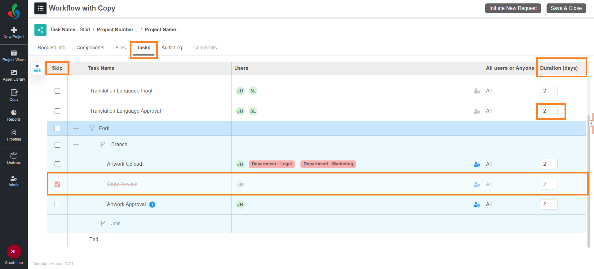 In some situations, not all tasks in a project need to be completed, and you may want to skip certain tasks. You can easily do this from the Tasks tab.